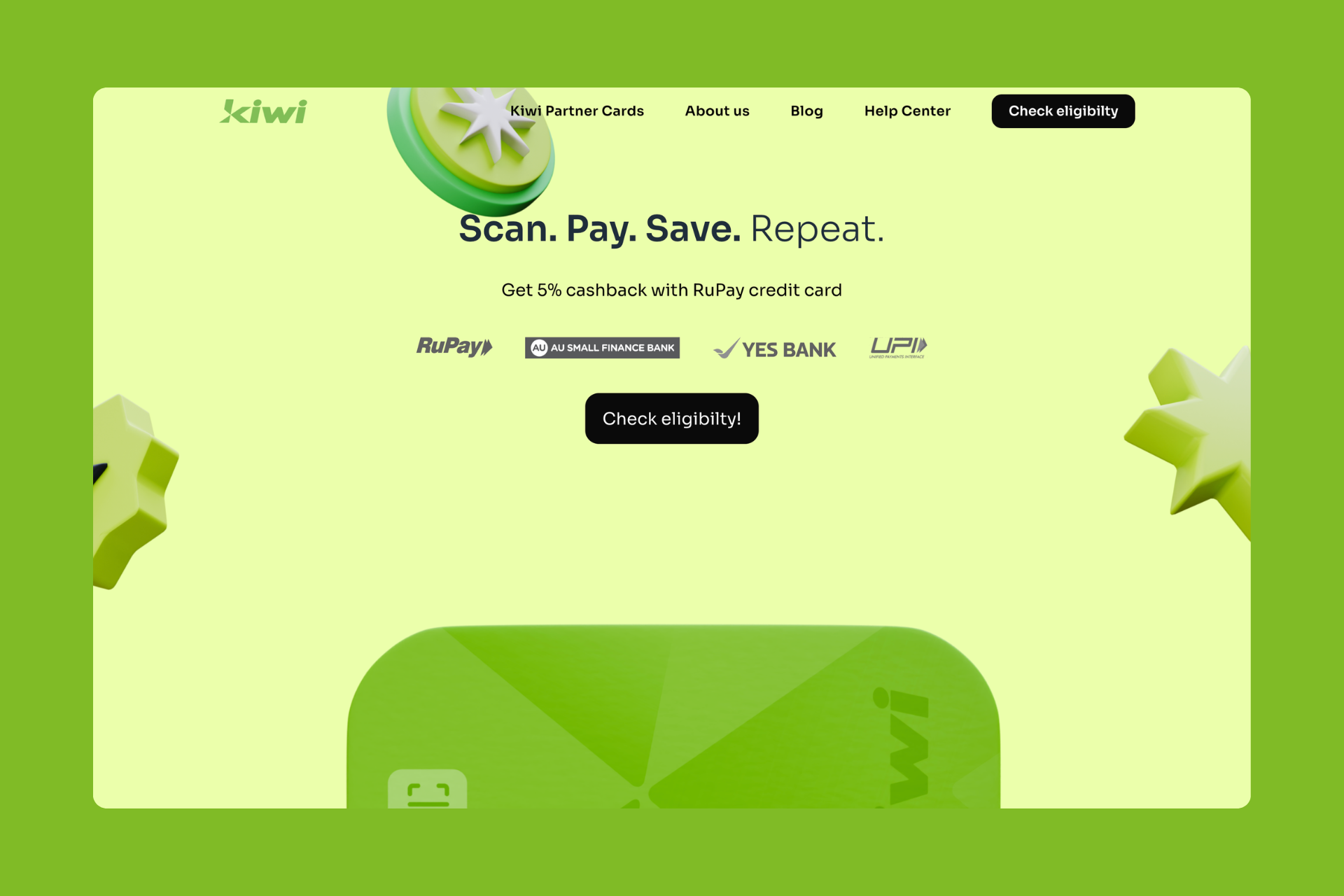 Its official RuPay credit card page says Kiwi offers 1.5% flat cashback on everyday UPI payments, and says users can upgrade to a paid Neon membership to get up to 5% cashback on UPI payments after spend milestones.