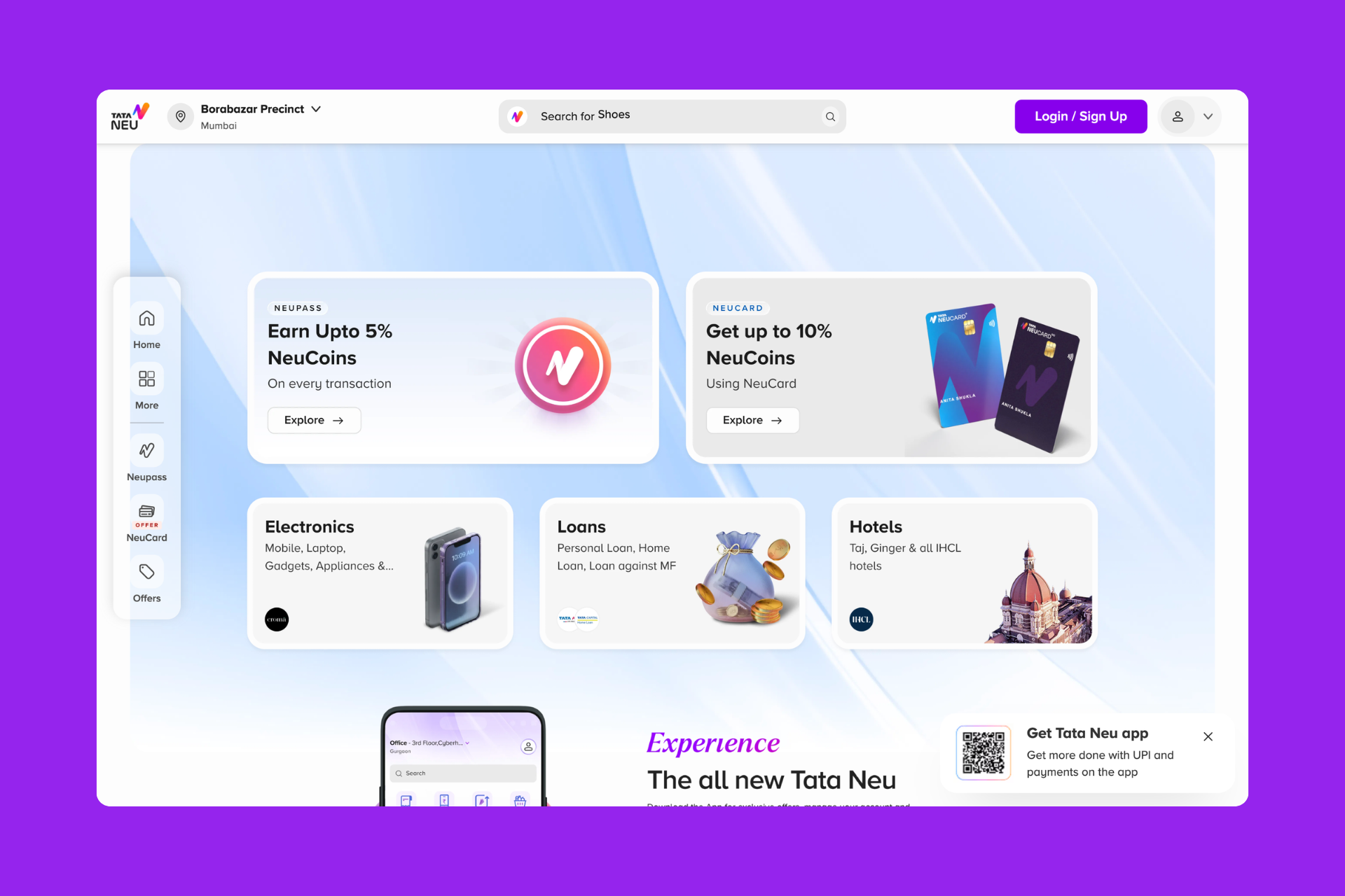 Tata Neu says users can earn NeuCoins on UPI transactions, especially around bill payments and in-app ecosystem spending. NeuPass also values 1 NeuCoin as ₹1 savings, which makes the reward easy to understand.